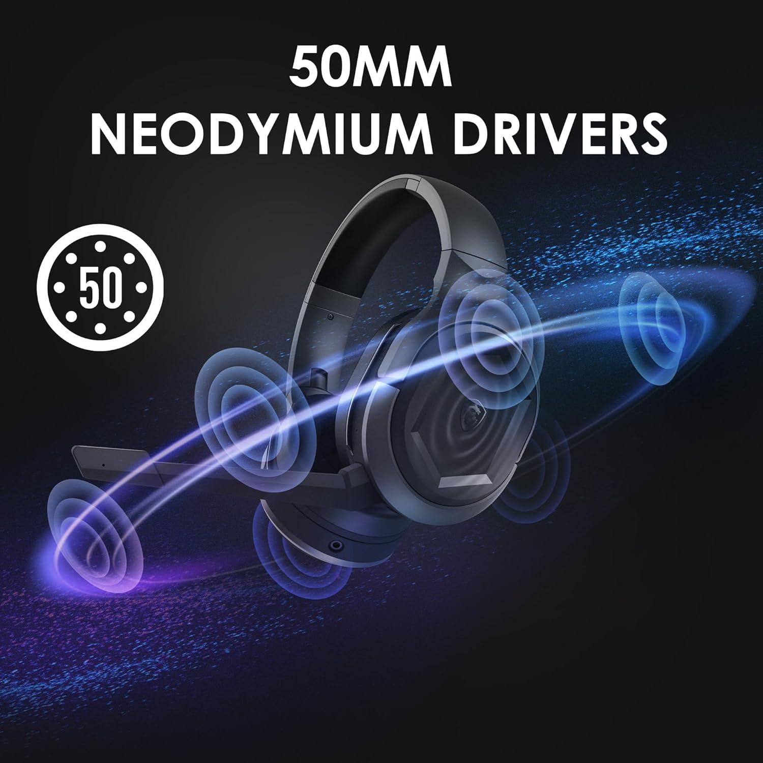 50mm Neodymium Drivers: High-quality bass-enhancing 50mm drivers reproduce real-life audio across high, medium, and low frequencies for gaming, movies, and music.