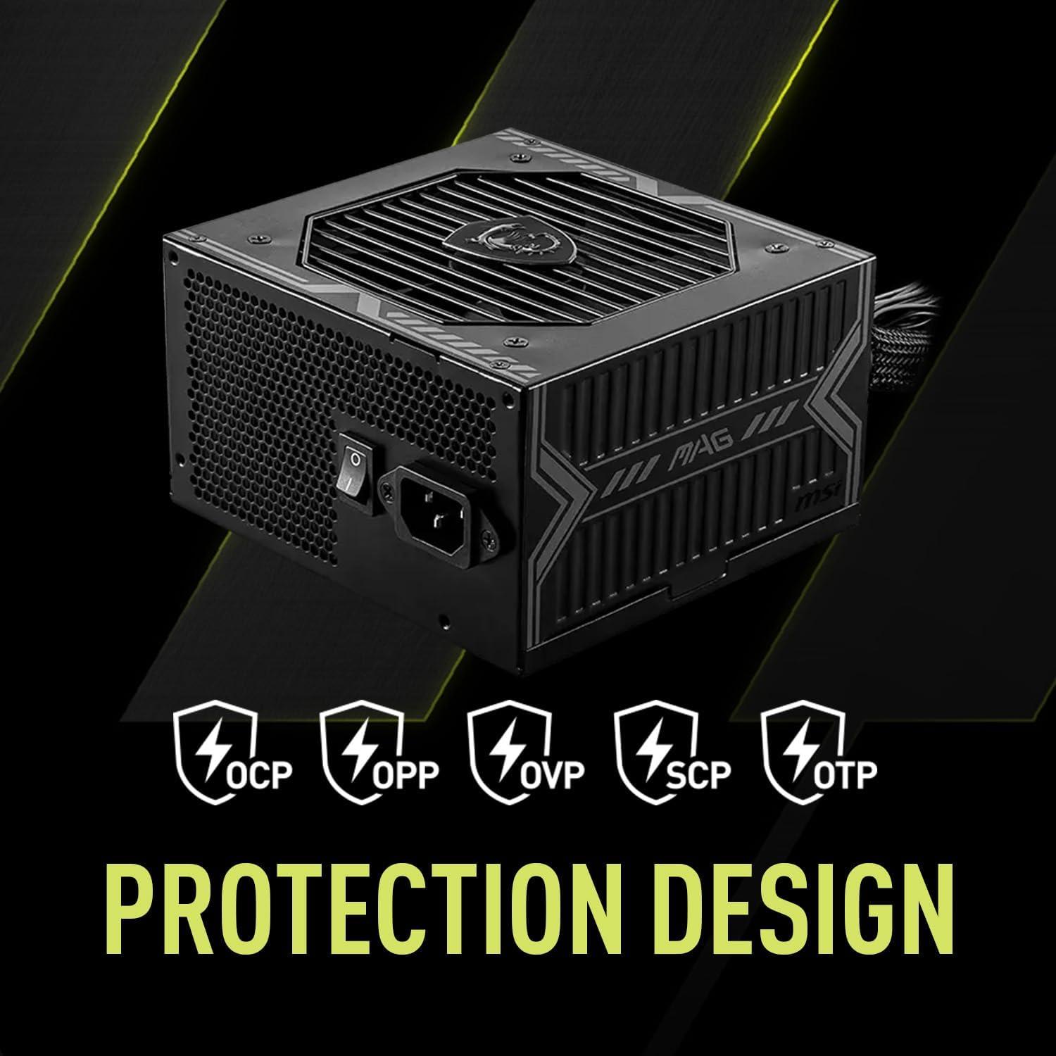 MSI MAG A650BE, Semi-Modular Compact 650W ATX Power Supply, 80+ Bronze, Low-Noise Fan, Active PFC Design, 5 Year Warranty