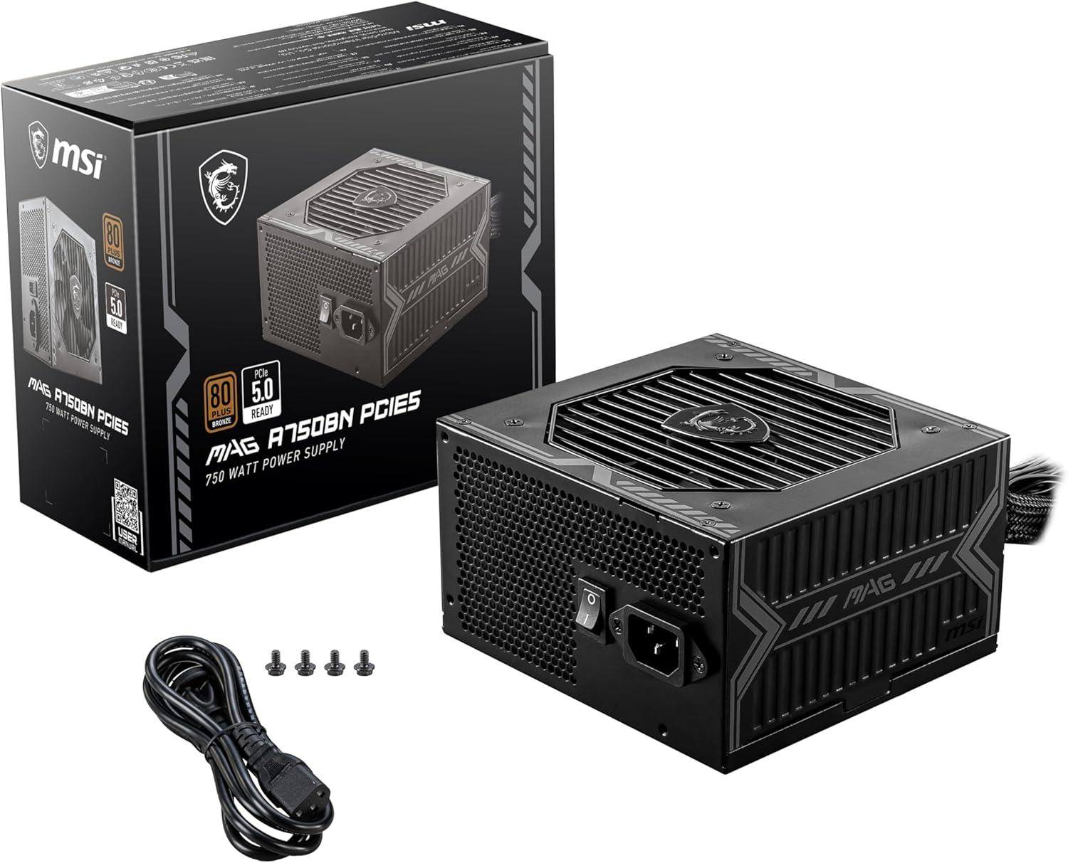 MSI MAG A750BN PCIE 5 Gaming Power Supply – 80 PLUS Bronze Certified 750w – Compact Size – ATX PSU