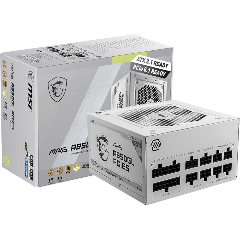 MSI MAG A750GL PCIE5, Fully Modular Compact Gaming 750W Power Supply, 80+ Gold, ATX 3.1 & PCIe 5.1 Ready, Native Dual-Color 12V-2×6 Cable, 10 Year Warranty(MAG A850GL PCIE5 WHITE)