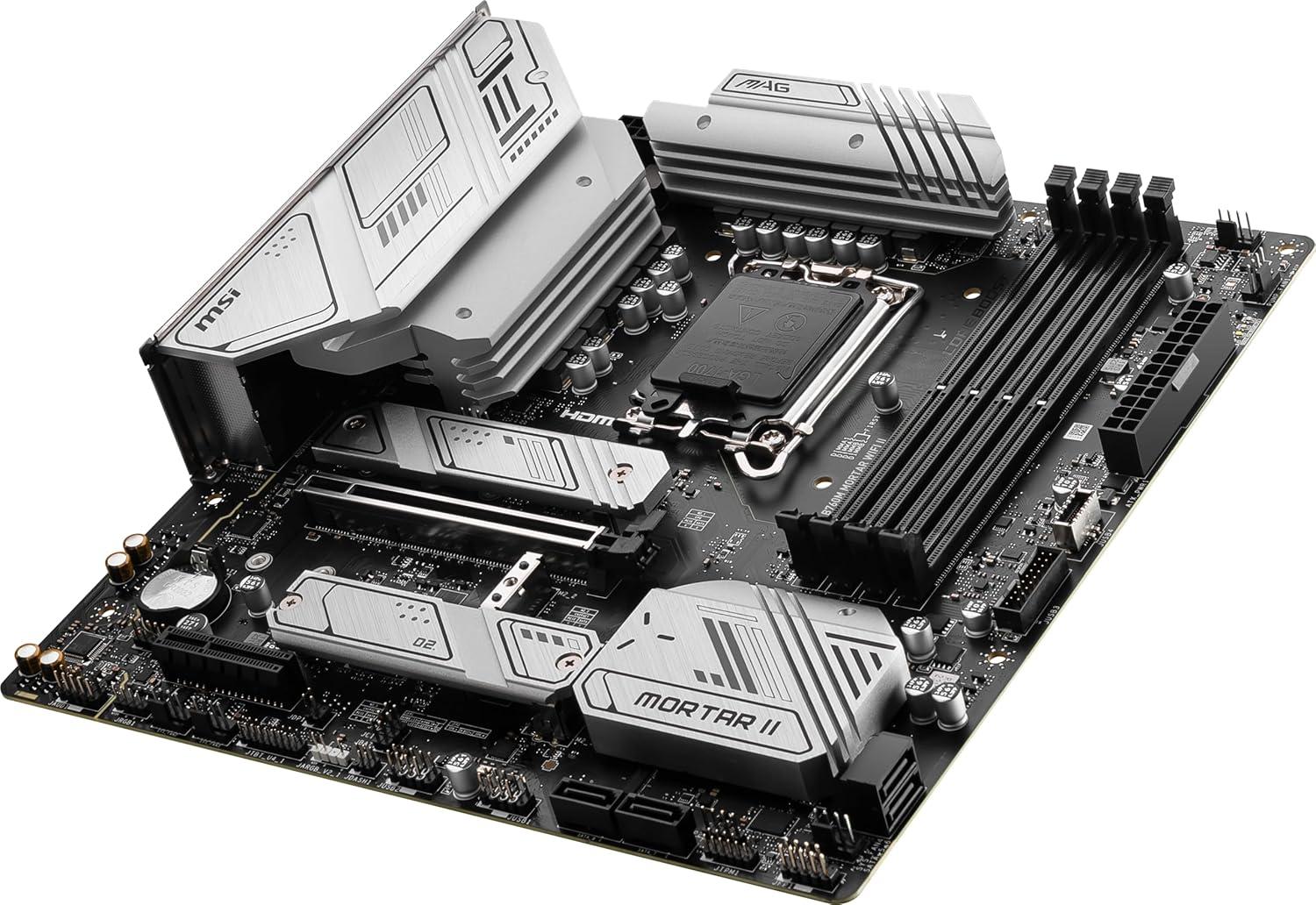 MSI MAG B760M Mortar WiFi II Gaming Motherboard (Supports 12th/13th/14th Gen Intel Processors, LGA 1700, DDR5, PCIe 5.0, M.2, 2.5Gbps LAN, USB 3.2 Gen2, HDMI/DP, Wi-Fi 6E, Bluetooth 5.3, mATX)