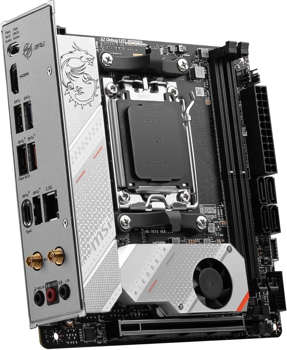 MSI MPG B650I Edge WiFi Gaming Motherboard (AMD Ryzen 9000/8000/7000 Series Processors, AM5, DDR5, PCIe 4.0, M.2, SATA 6Gb/s, USB 3.2 Gen 2, HDMI, Wi-Fi 6E, Bluetooth 5.3, 2.5Gbps LAN, Mini-ITX)(Mini-ITX)