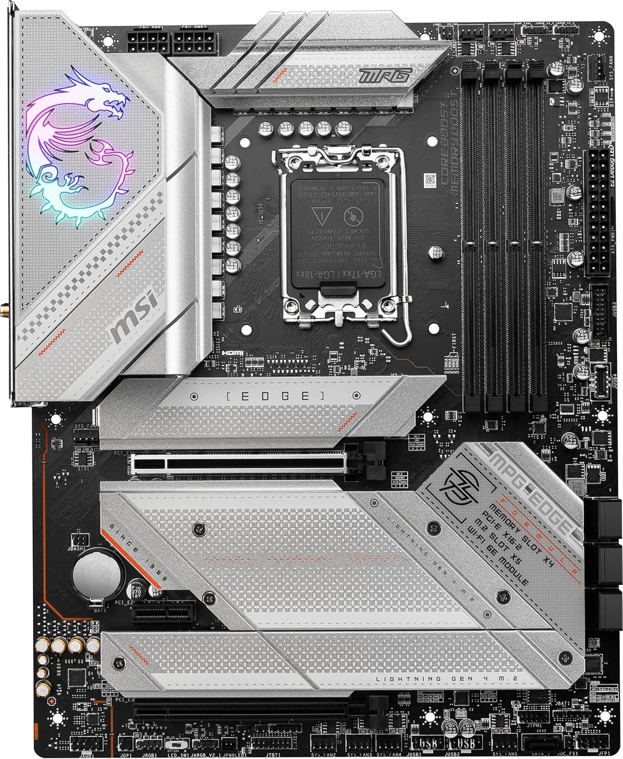 MSI MPG Z790 Edge WiFi Gaming Motherboard (Supports 12th/13th/14th Gen Intel Processors, LGA 1700, DDR5, PCIe 5.0, M.2, 2.5Gbps LAN, USB 3.2 Gen2, Wi-Fi 6E, Bluetooth 5.3, ATX)(ATX)