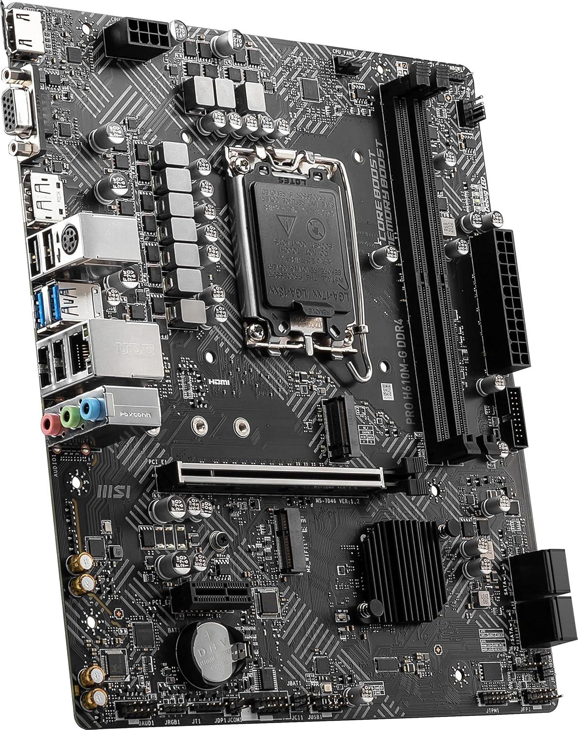 MSI PRO H610M-G DDR4 V1 Motherboard (12th/13th/14th Gen Intel Core, LGA 1700 Socket, DDR4, PCIe 4, SATA 6Gb/s, 1Gbps LAN, M.2 Slots, USB 3.2, mATX)