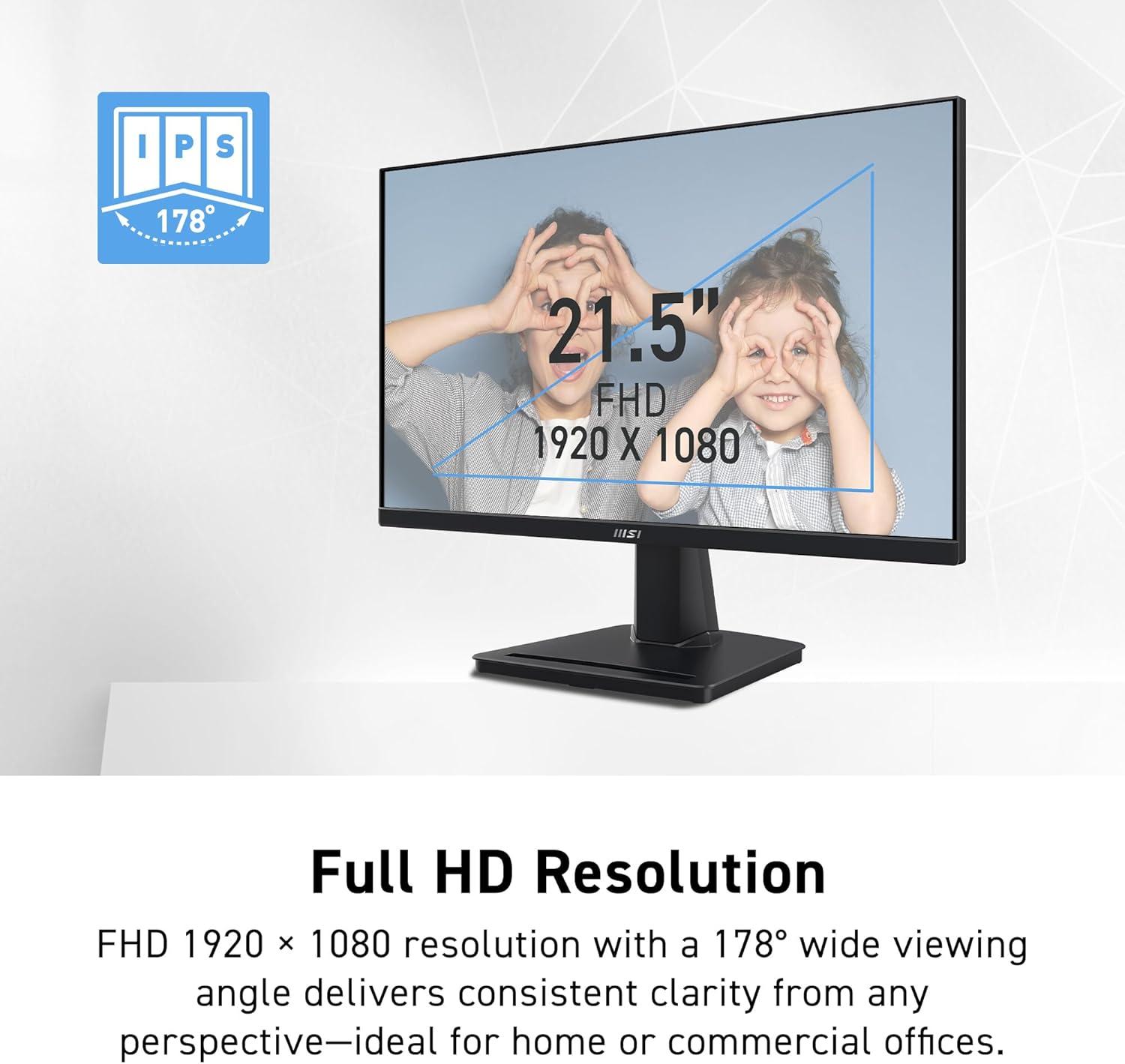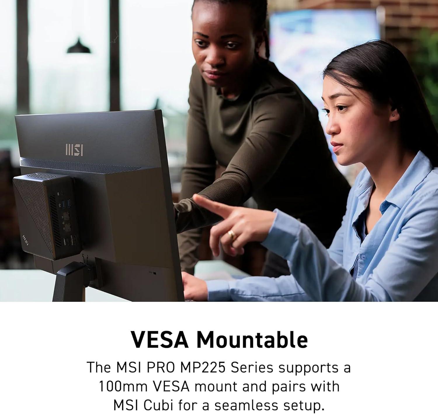 msi PRO MP225, 22-inch IPS 1920 x 1080 (FHD) Computer Monitor, 100Hz, Adaptive-Synch, HDMI, Video Port, VESA Mountable, Tilt, 1ms, Black(Pro MP225)