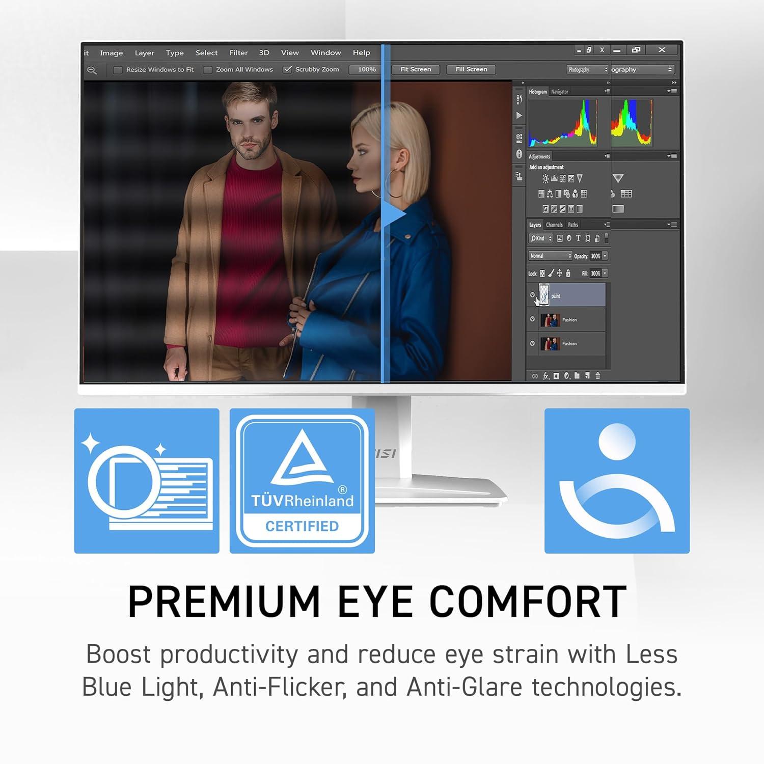 msi PRO MP243W E14 24-inch IPS 1920 x 1080 (FHD) Computer Monitor, 144Hz, Adaptive-Sync, HDR Ready, HDMI, Display Port, VESA Mountable, Tilt, 4-Side Slim Bezel, 1ms, White(PRO MP243W E14)