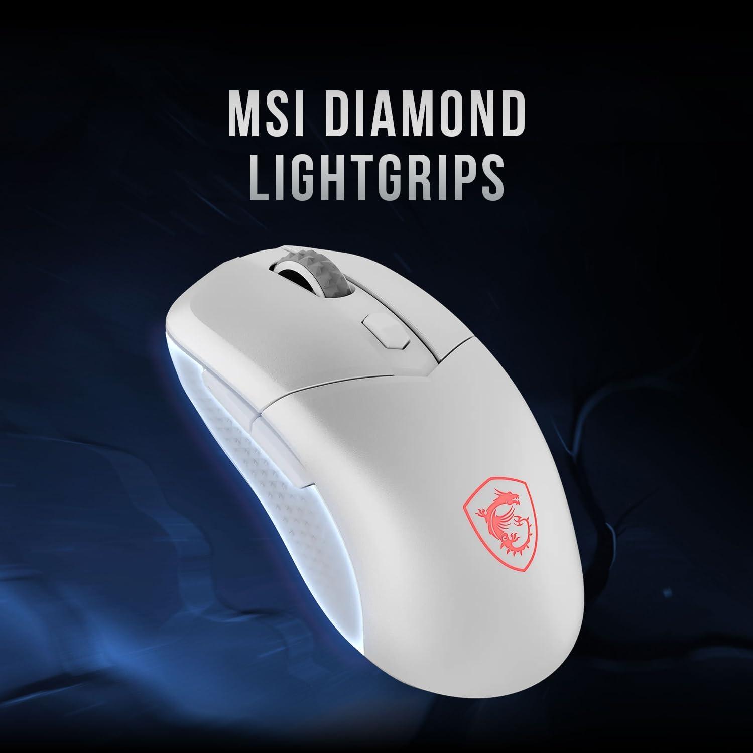 msi Versa 300 Wireless White Gaming Mouse, 8000 DPI, 30M+ Clicks Kailh Switch, Optical Sensor, Ergonomic Ambitextrous Hand Design, RGB Light